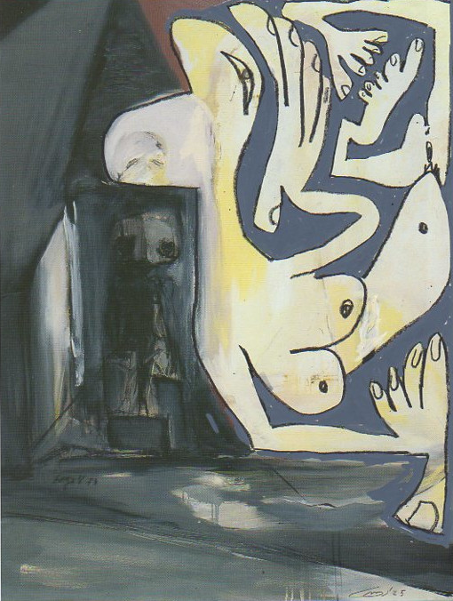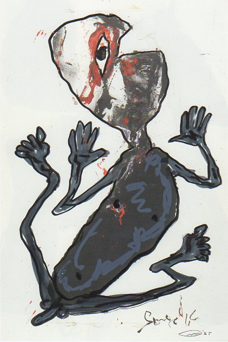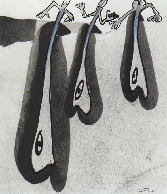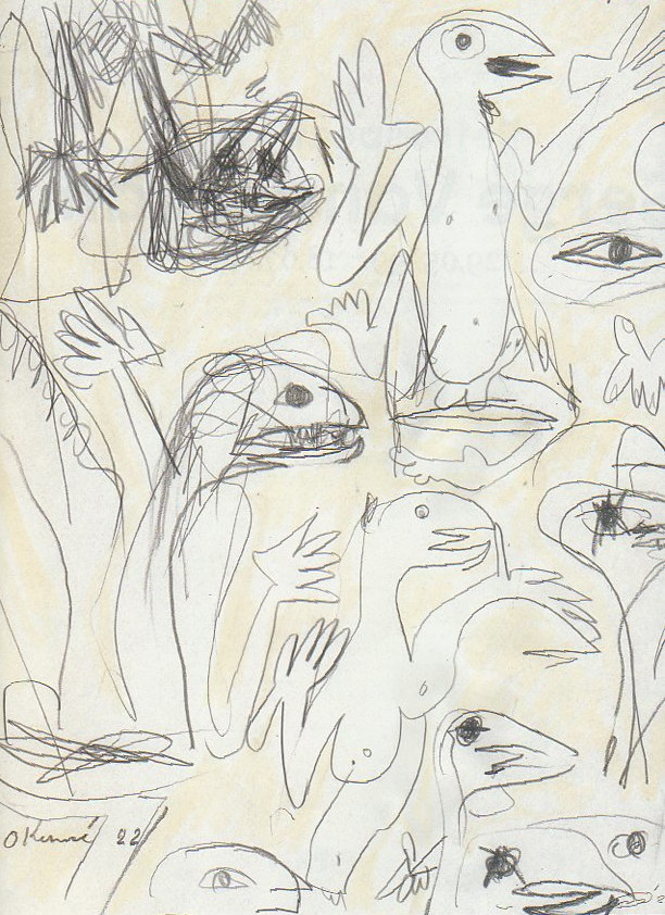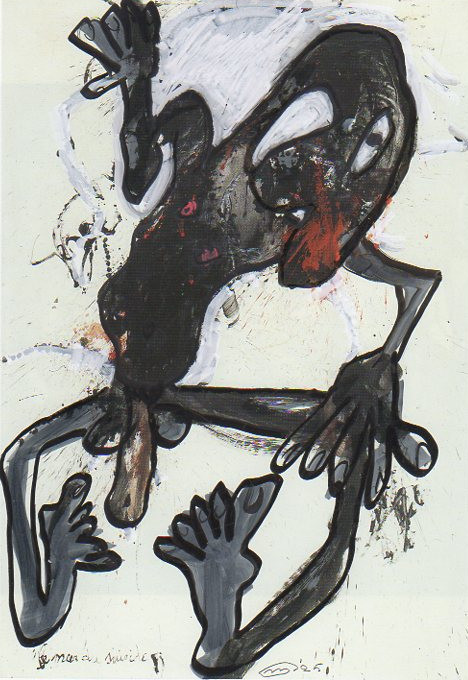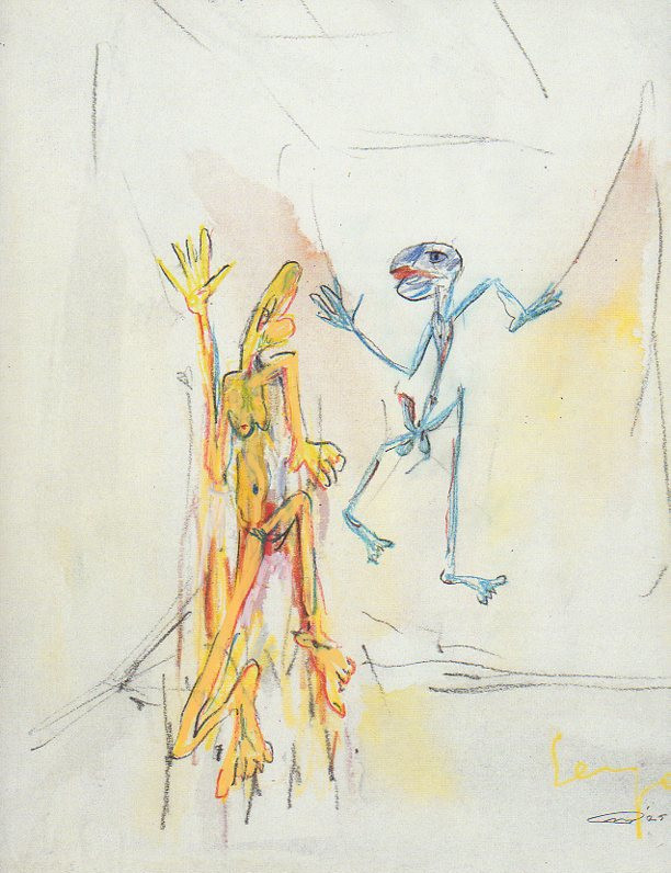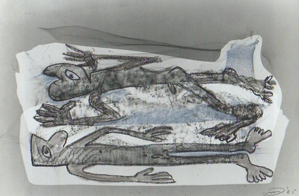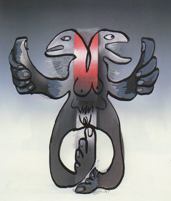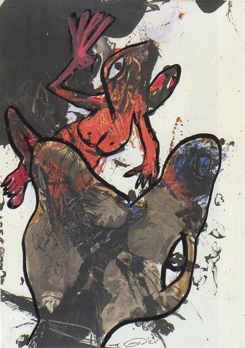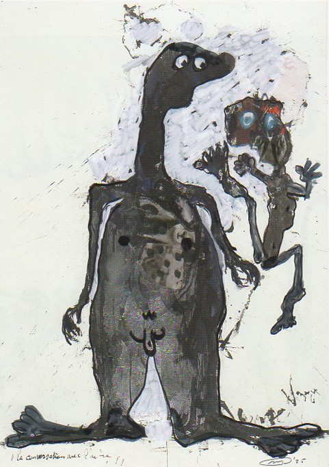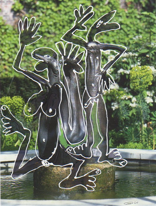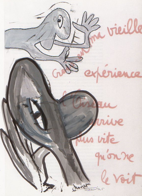 101 tekeningen van Pierre Mertens op reproducties van werk van Serge Vandercam op het de catalogus Retrospective van het PMMK 1999