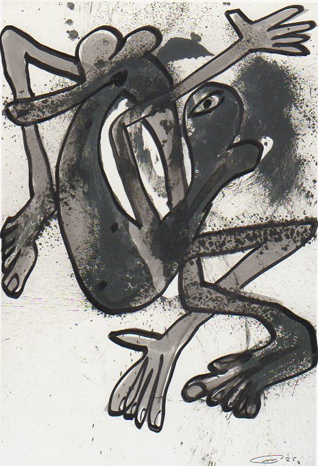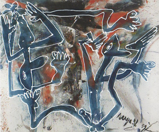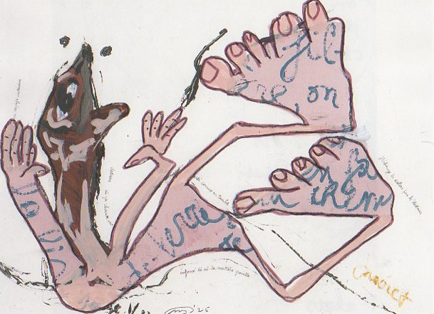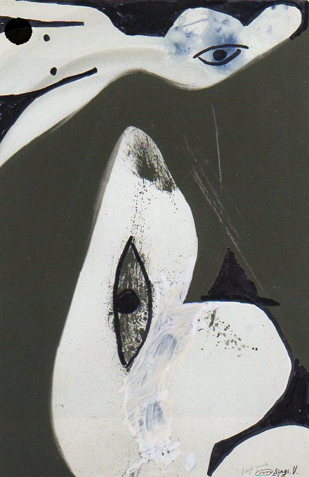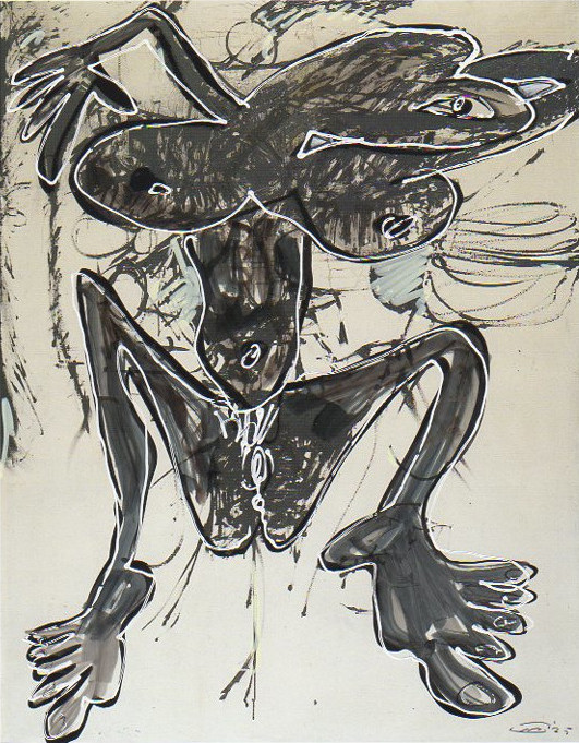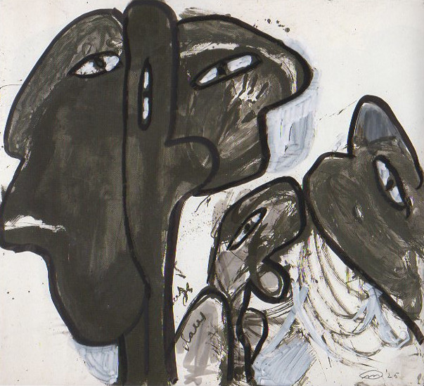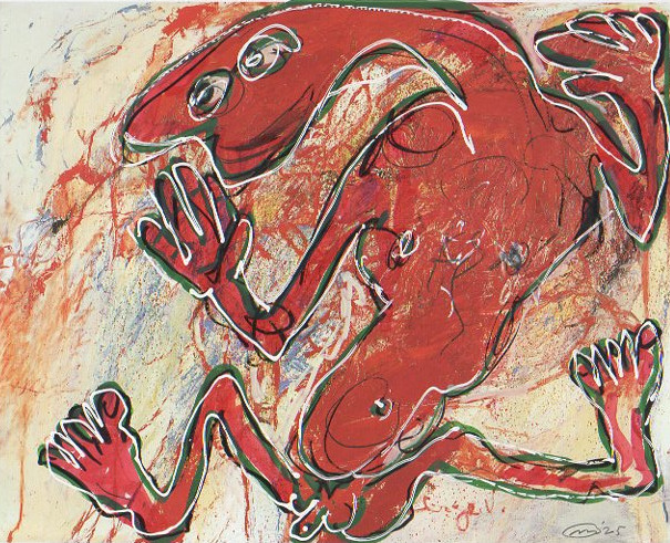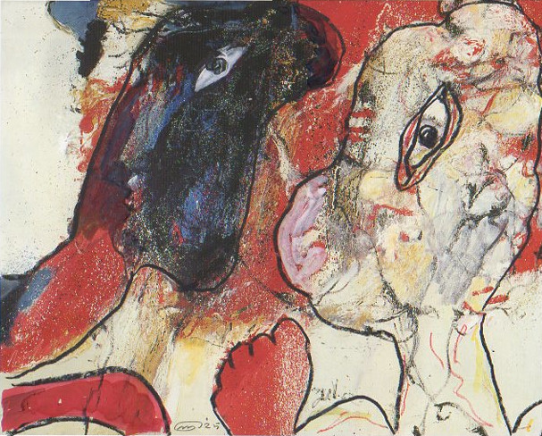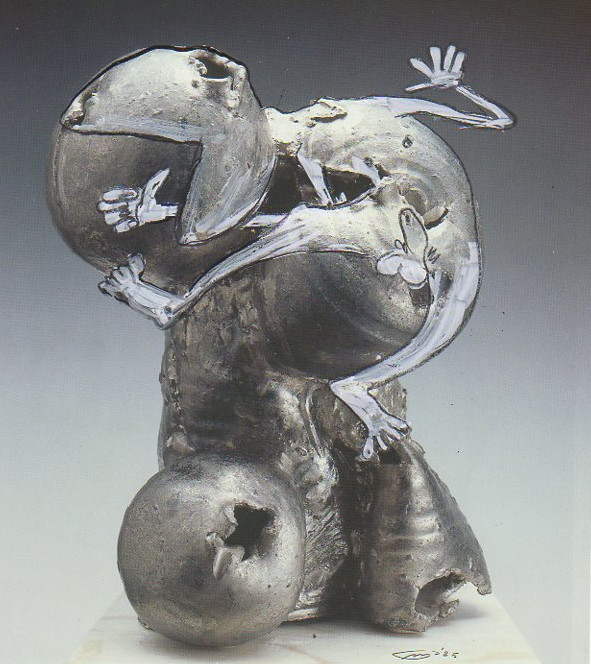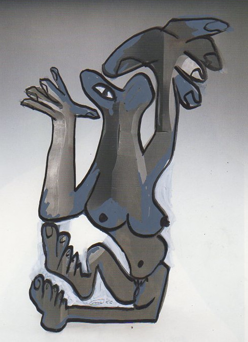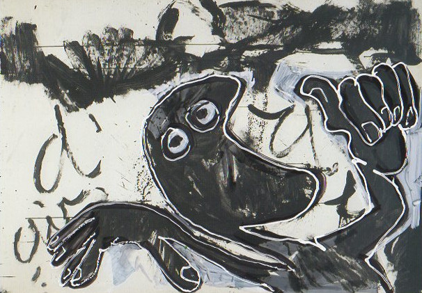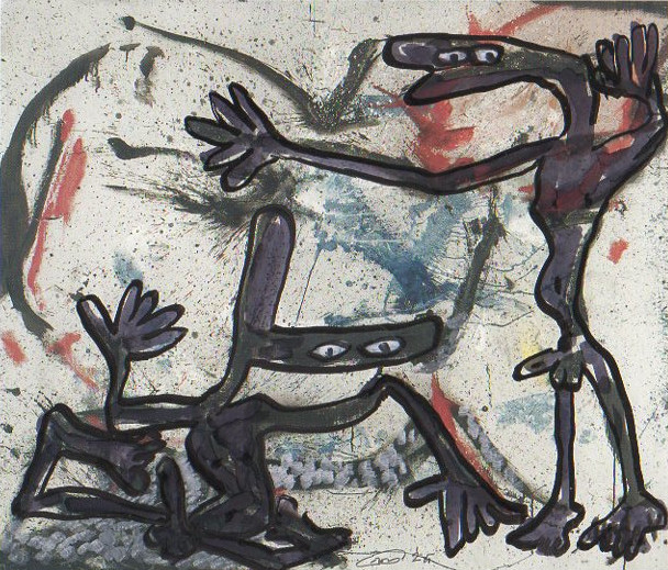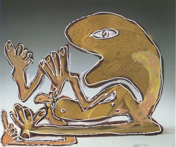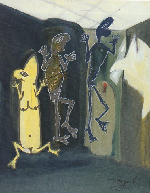 101 tekeningen van Pierre Mertens op reproducties van werk van Serge Vandercam op het de catalogus Retrospective van het PMMK 1999