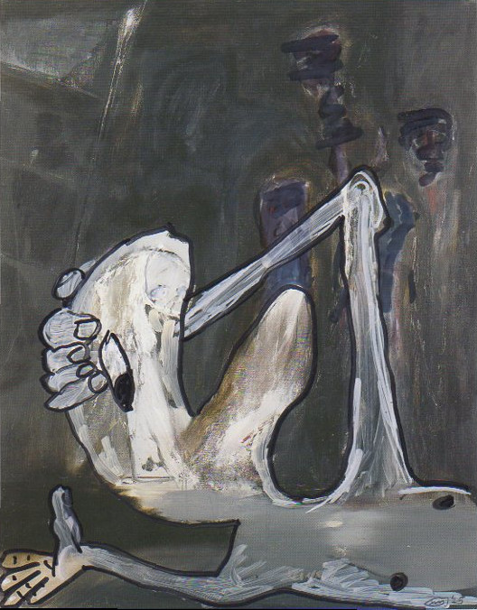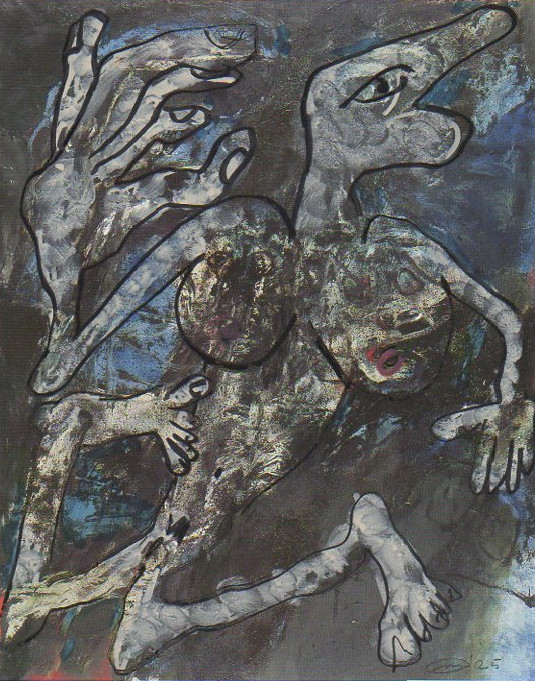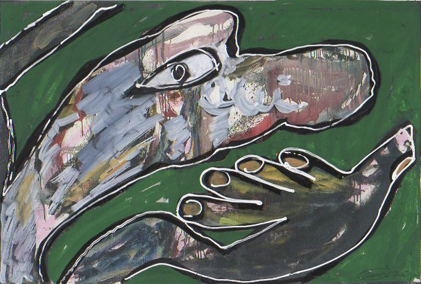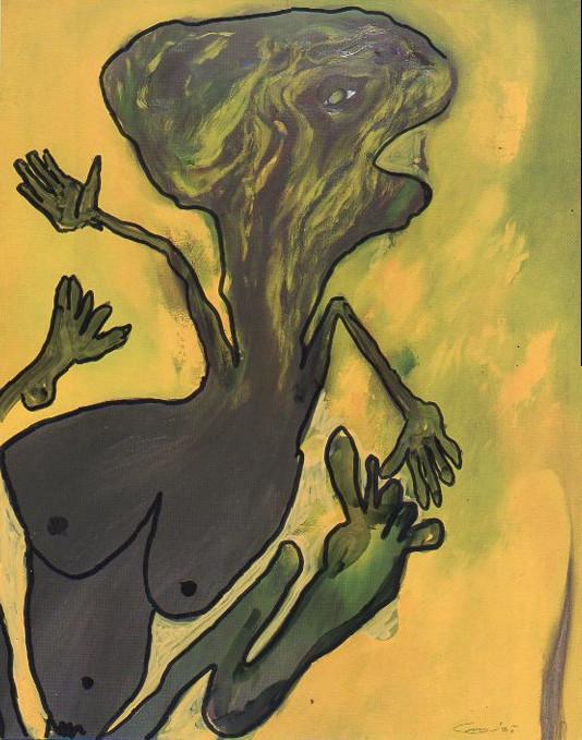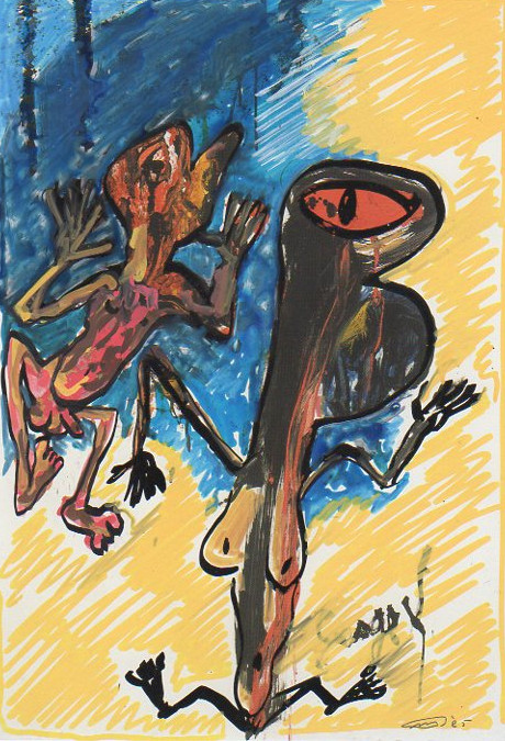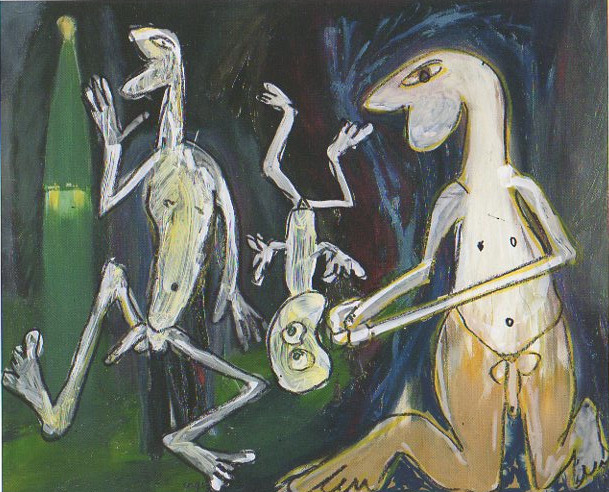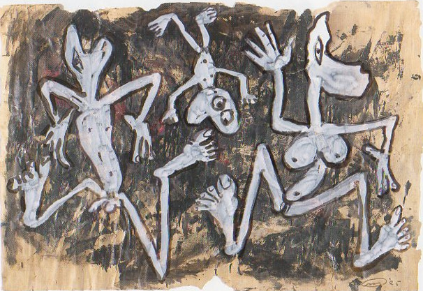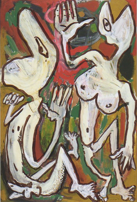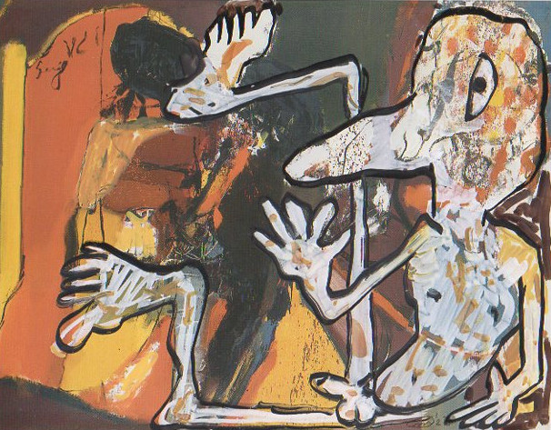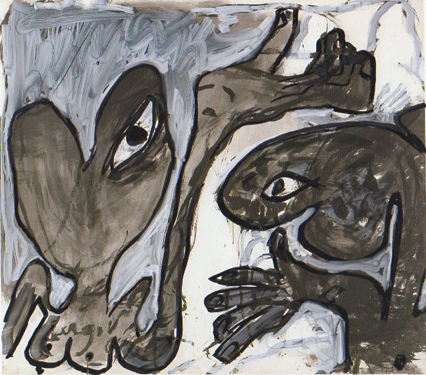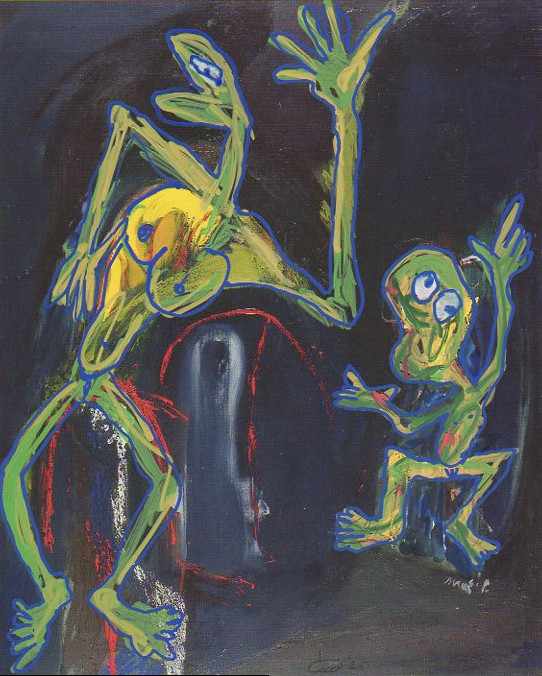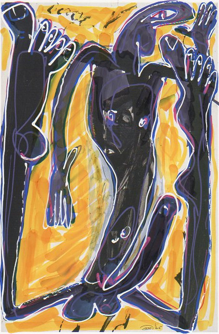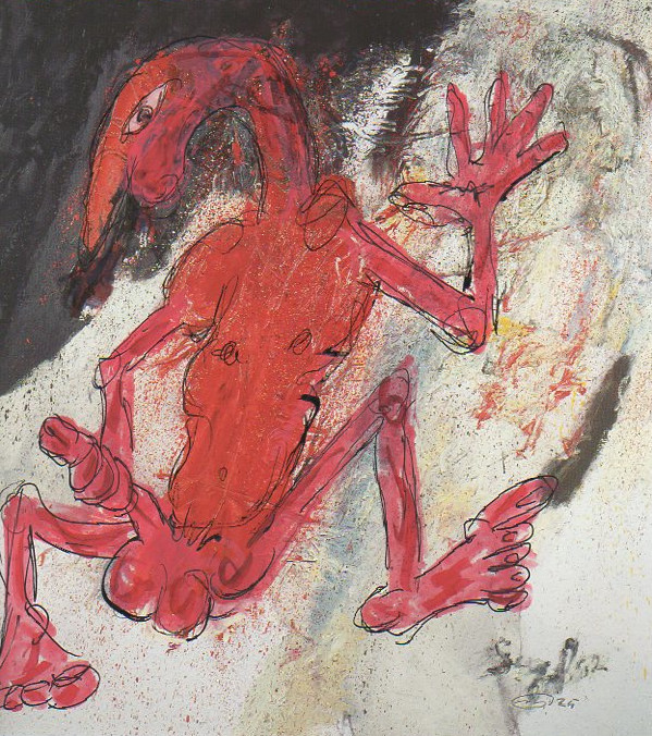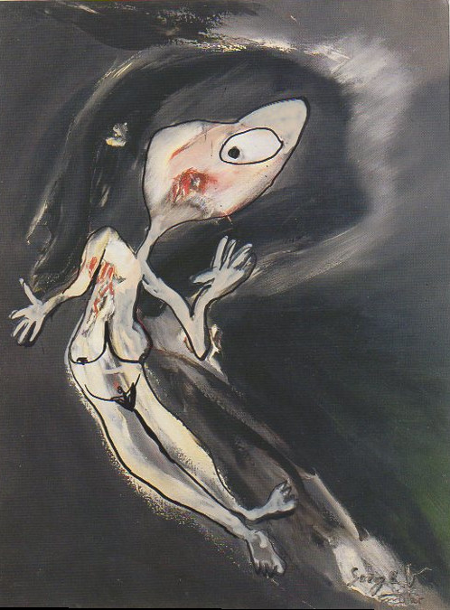 101 tekeningen van Pierre Mertens op reproducties van werk van Serge Vandercam op het de catalogus Retrospective van het PMMK 1999